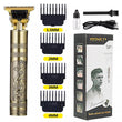 This wireless hair clipper is crafted with a durable metal body featuring beautifully engraved designs that stand out from ordinary trimmers. Its stainless steel T-shaped blades ensure sharp, precise trimming for your hair, beard, and mustache while being gentle on your skin. 💈